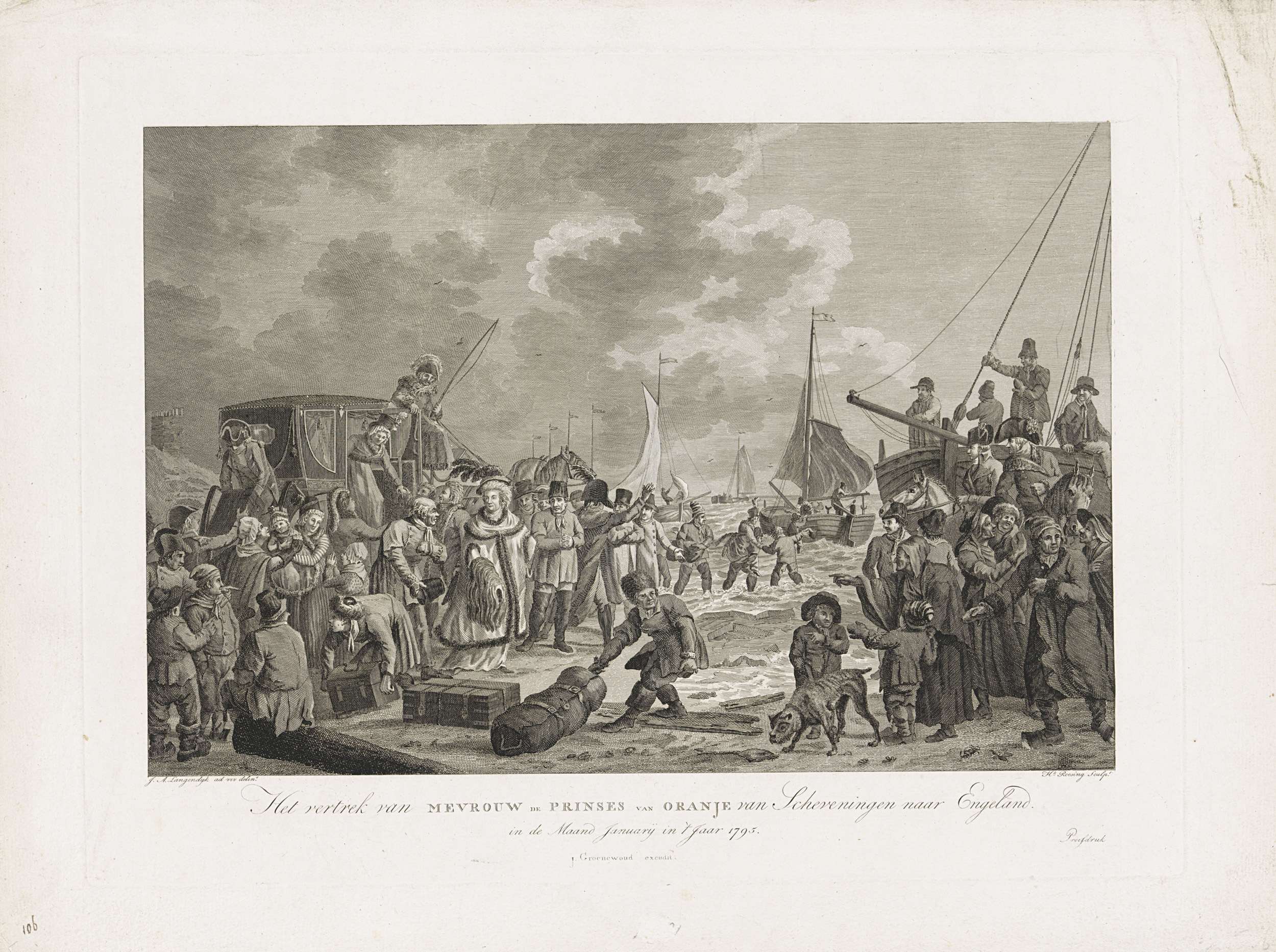 Vertrek van de prins van Oranje uit Scheveningen, 1795