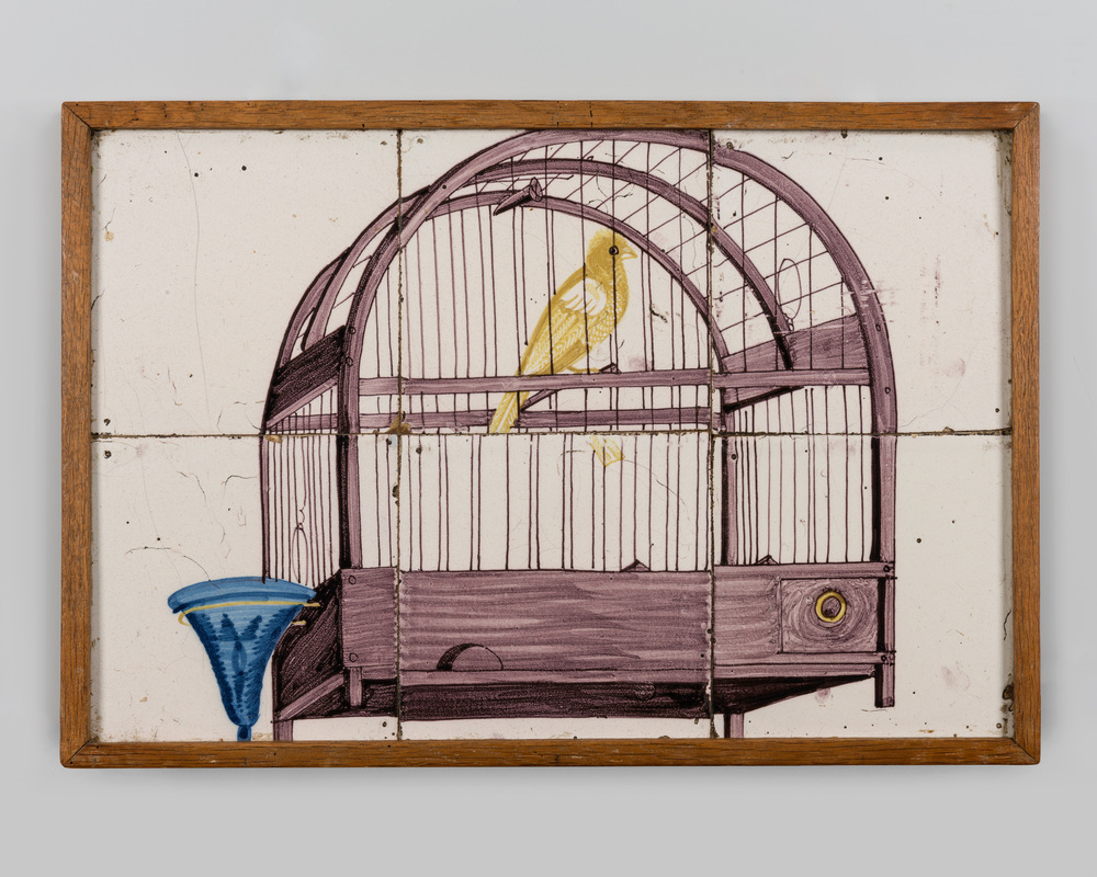 Tegel van keramiek, tinglazuur, voorstellende een bi...