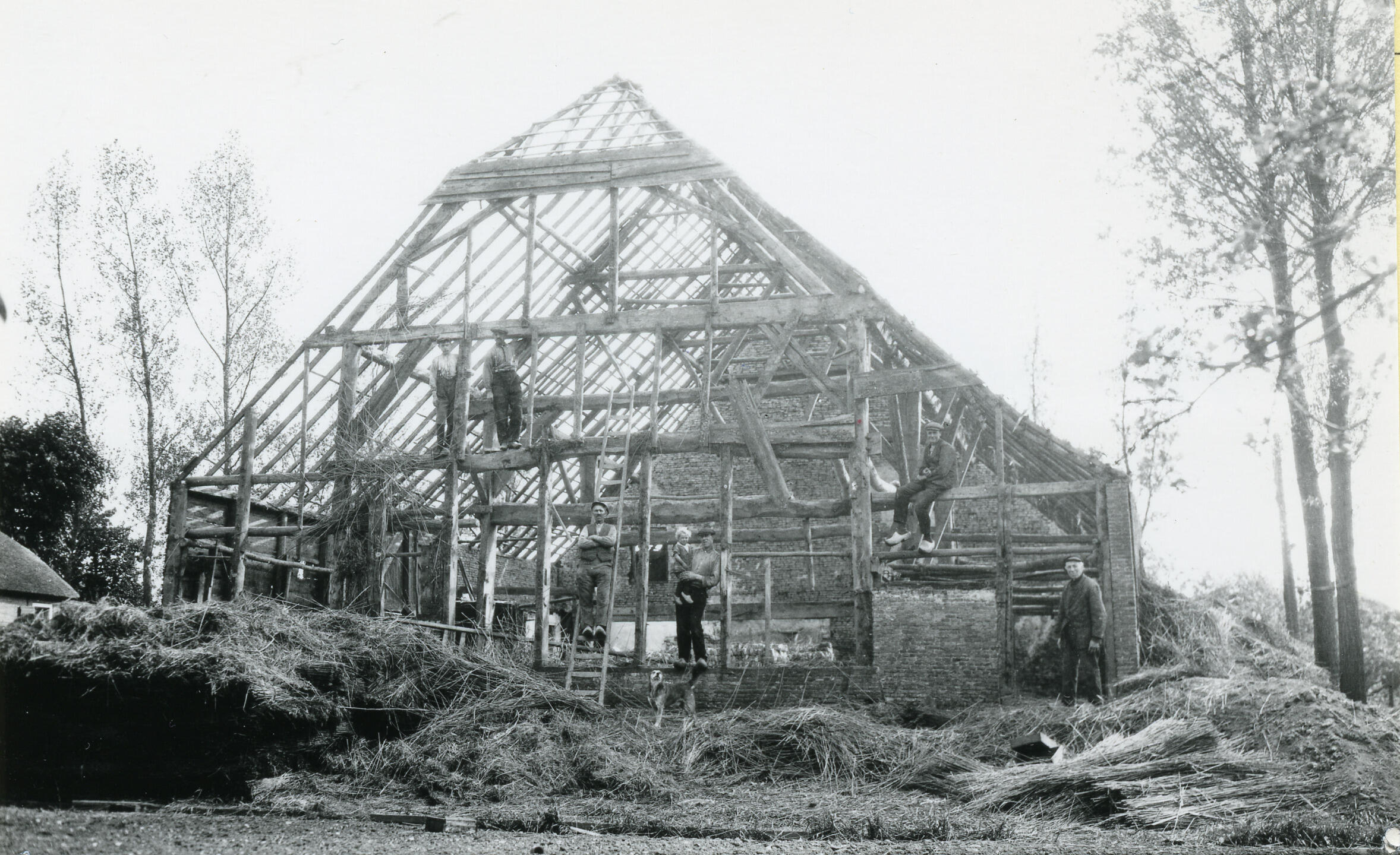 Afbraak van een boerderij, Meeuwen, 1937 (zwart-wit ...