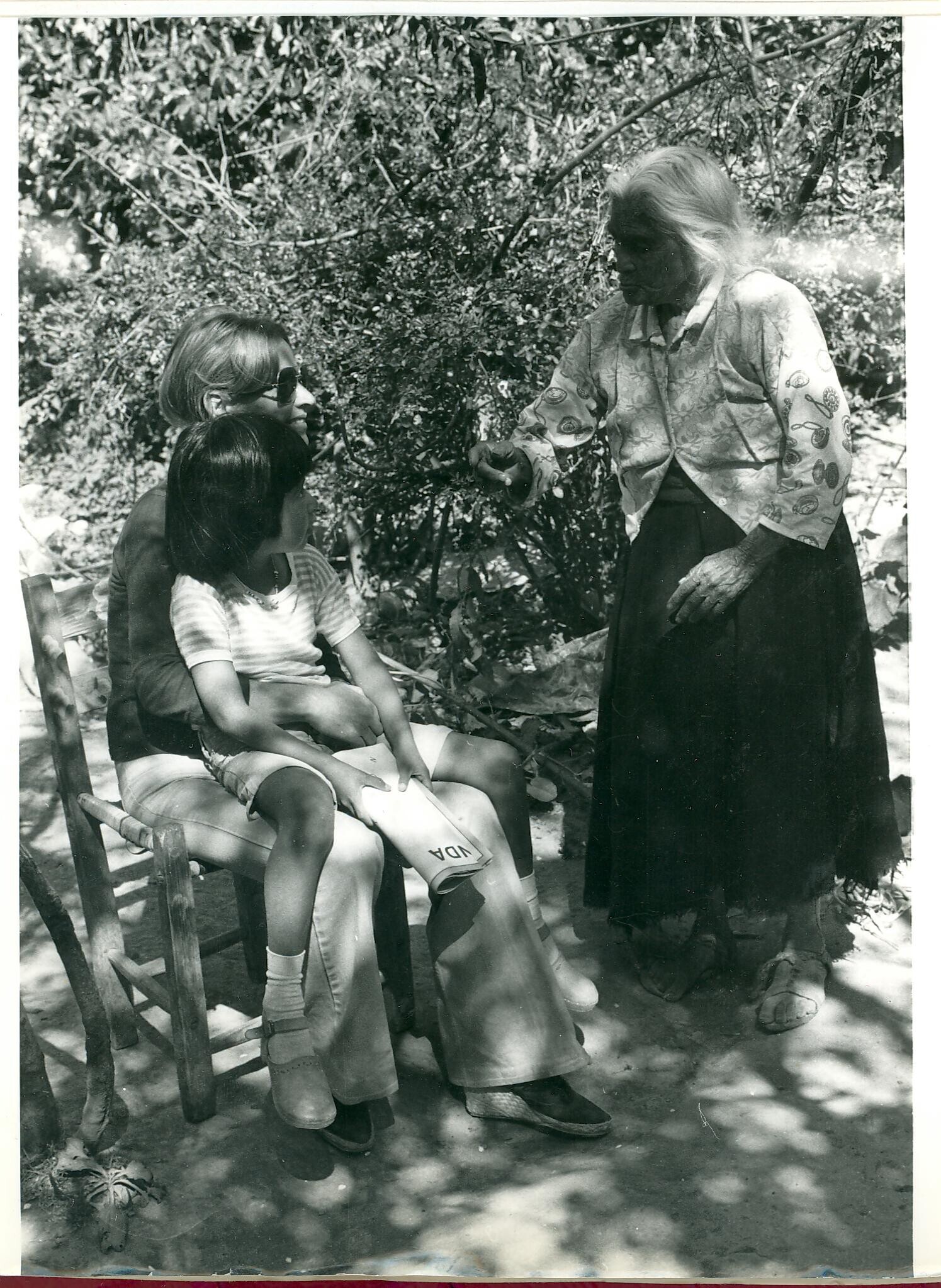 Paula Leyenaar en dochter Floor met vrouw uit het dorp