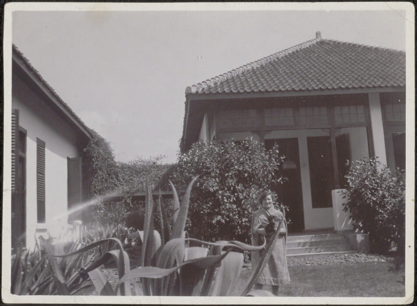 Portret van een vrouw in haar tuin