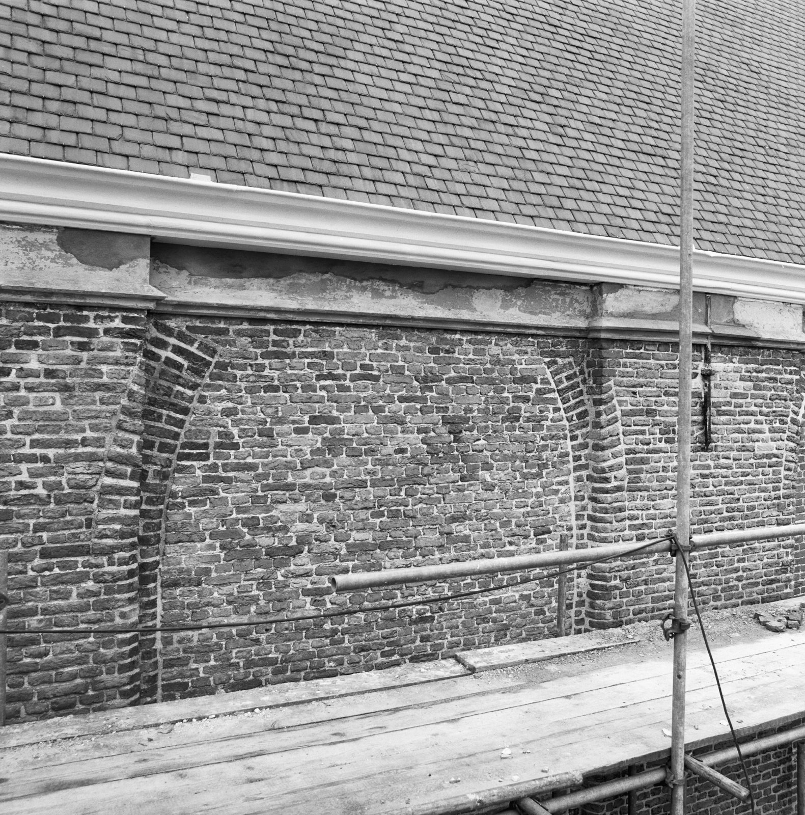 Interieur, Hervormde kerk in de steigers tijdens res...