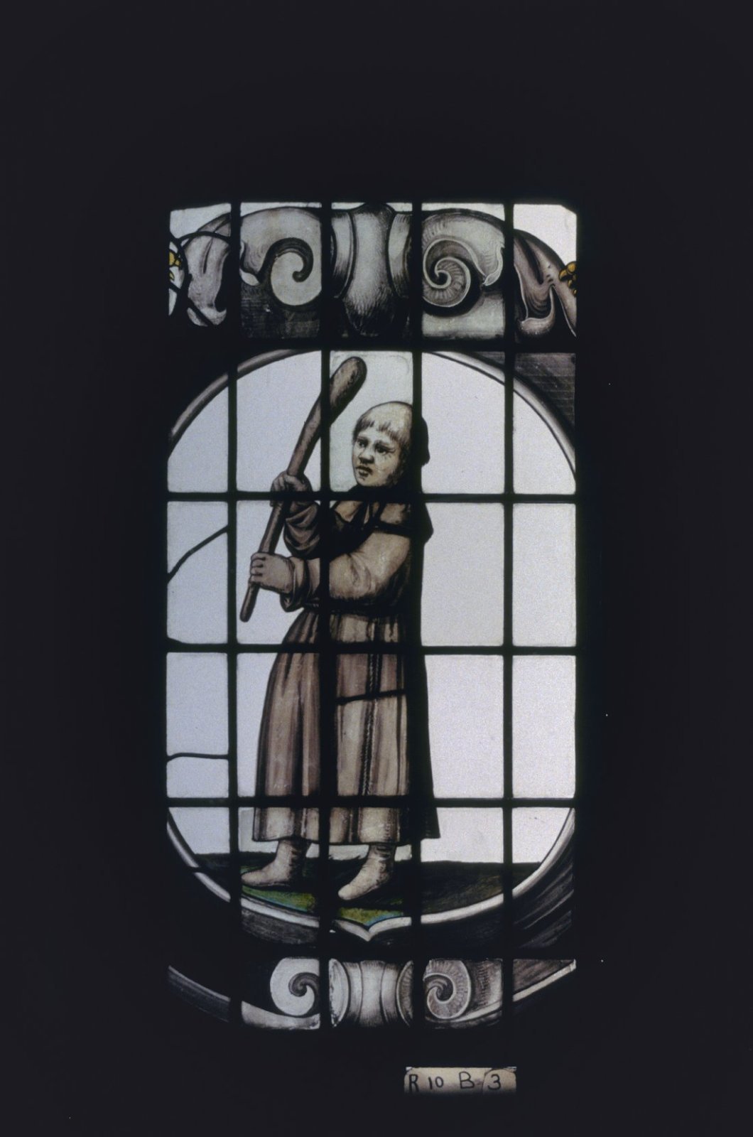 Interieur, oostwand van de zijbeuk, gebrandschilderd...