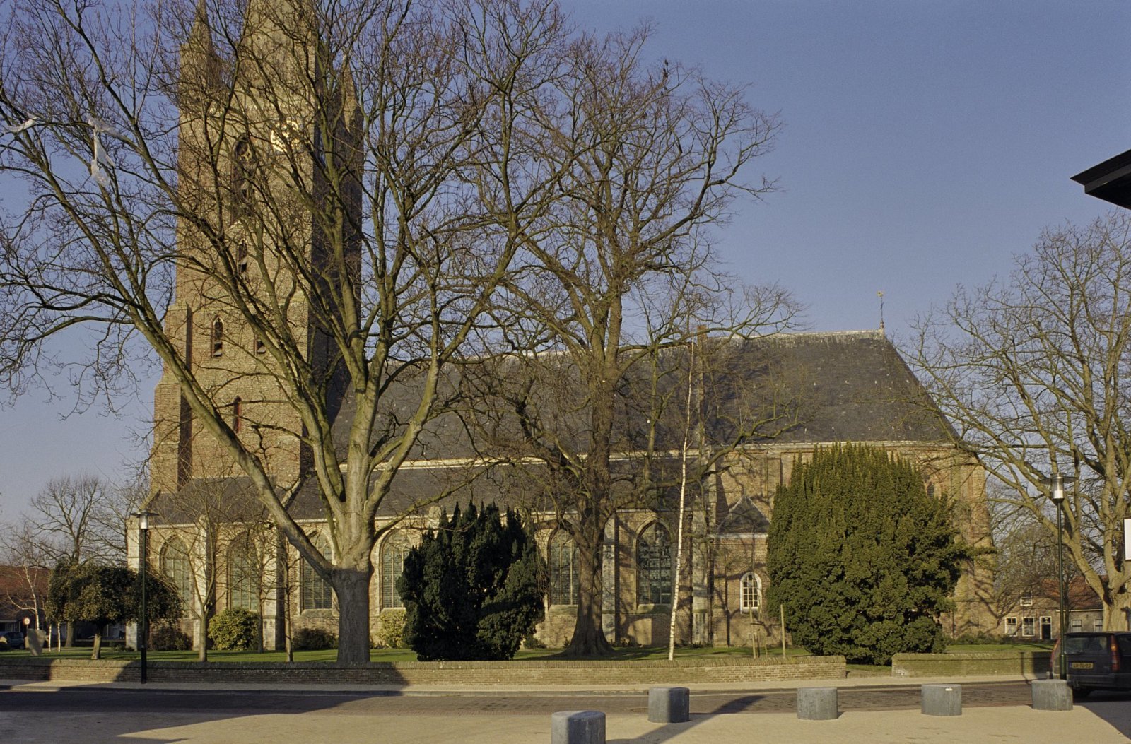 Kloosterpand met kerkhof en noordgevel van de kerk