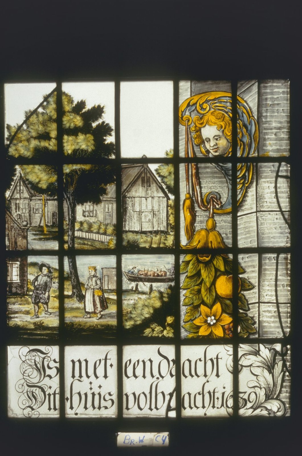 Interieur, gebrandschilderd glas, raam 10: "Wapen va...