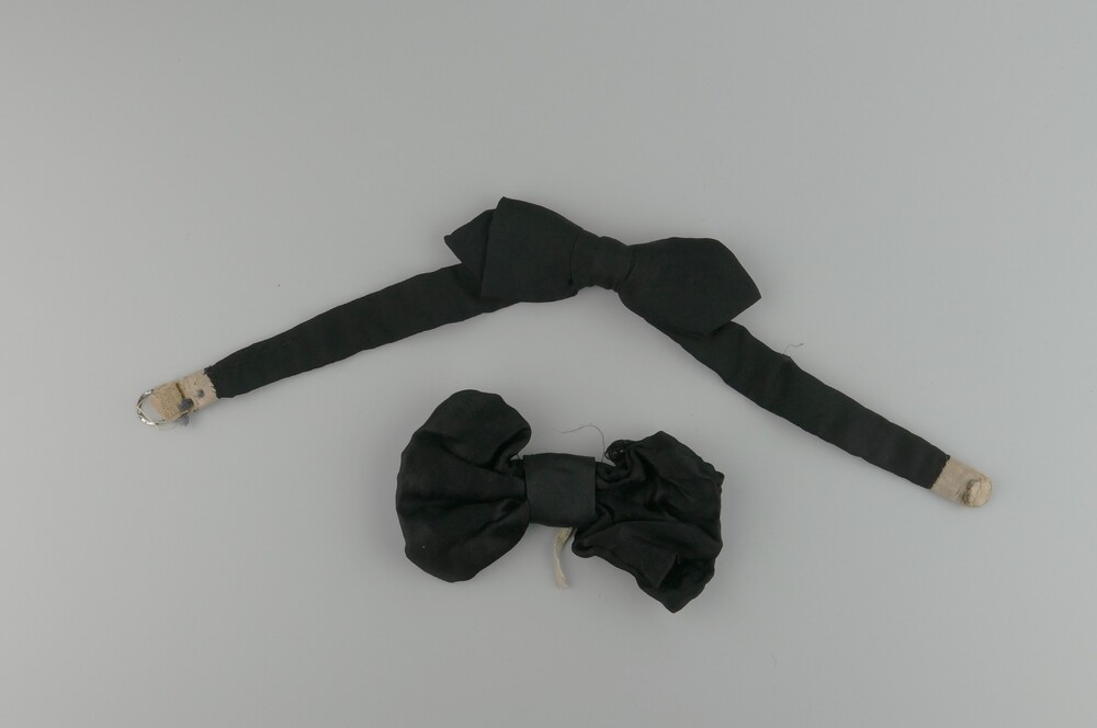 2 zwarte halsstrikjes van kunstzijde, circa 1900