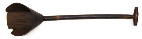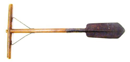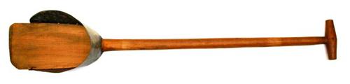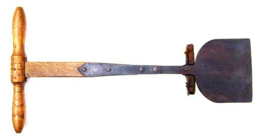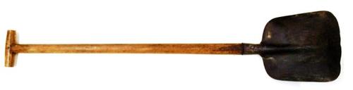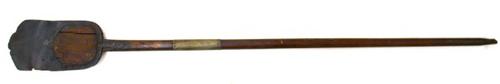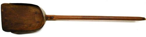 Veen- of baggerspade van hout met ijzerbeslag gebrui...