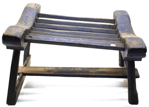 Aaddrager van hout, blauw geverfd, gebruikt om een b...