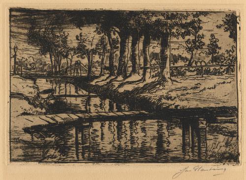 Tekening van de Kaden met zicht op de Hoofdbrug