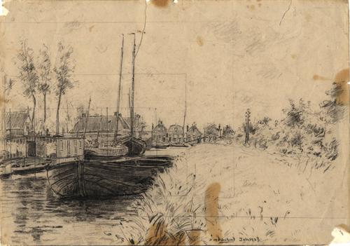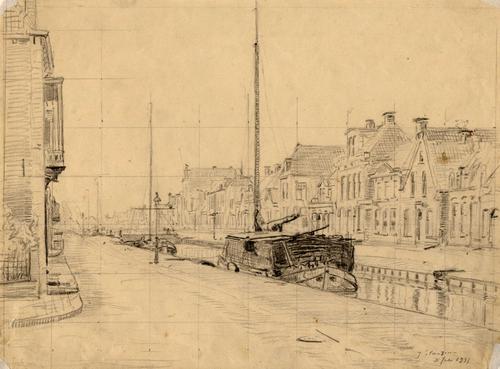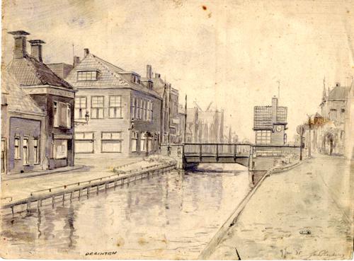 Tekening van de Noorderdwarsvaart te Drachten