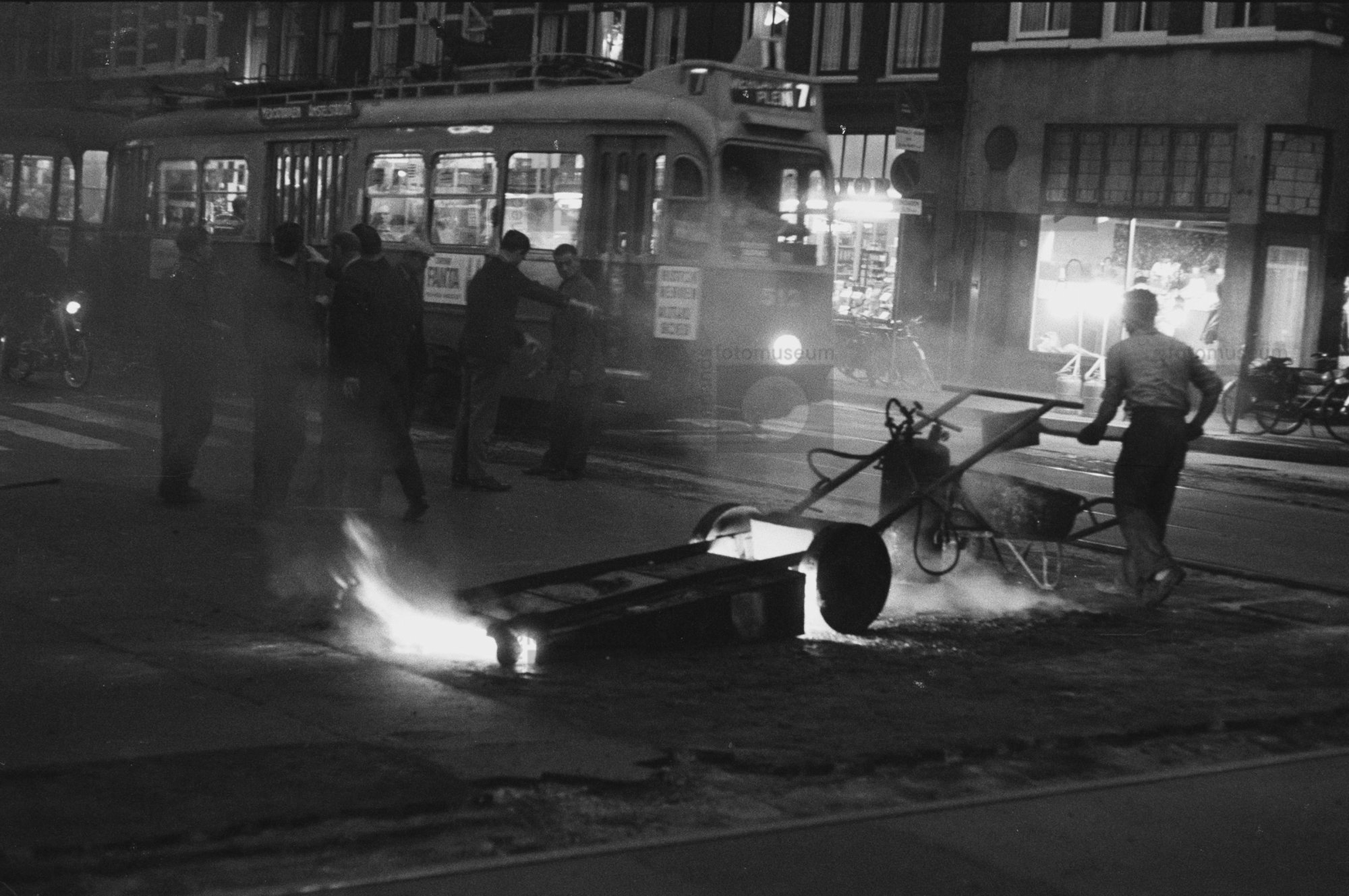 Amsterdam. Kinkerstraat. Asfalteren van het wegdek b...