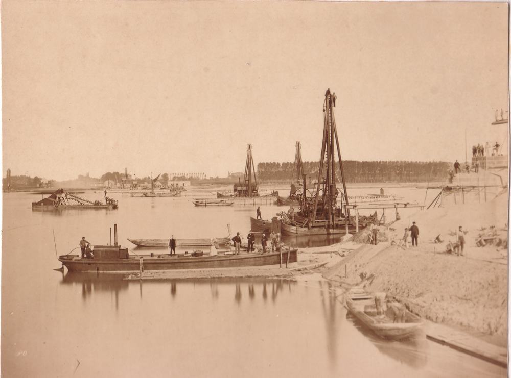 Bouw spoorbrug bij Zaltbommel 16 oktober 1866