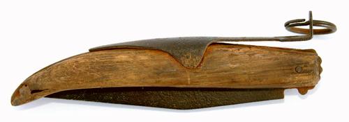Mes. Zakmesje In de vorm van een Friese schaats.