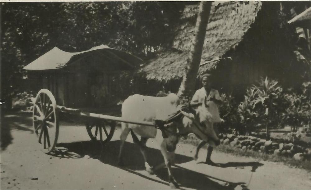 Ned. Indië na WO 2; tweewielige kar, koe, Indische m...