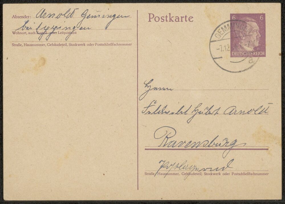 Briefkaart aan Hubert van Vader en moeder dd 06-12-1944