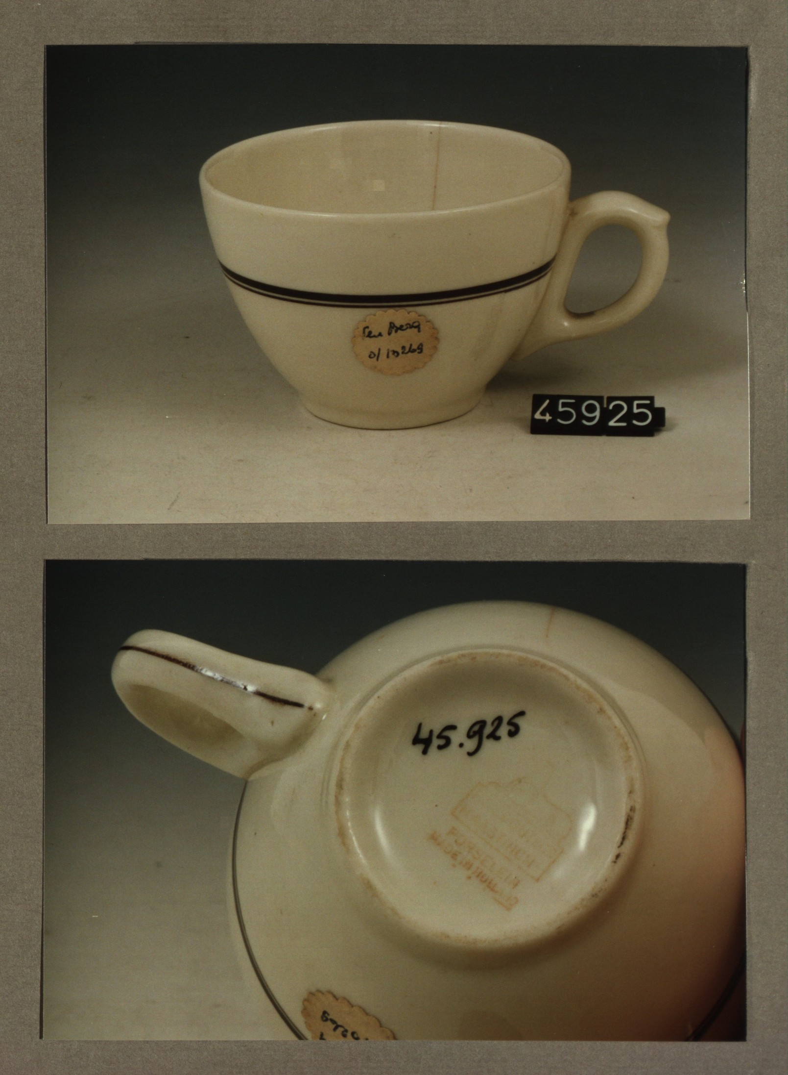 Kop met opschrift, model F met decor THT