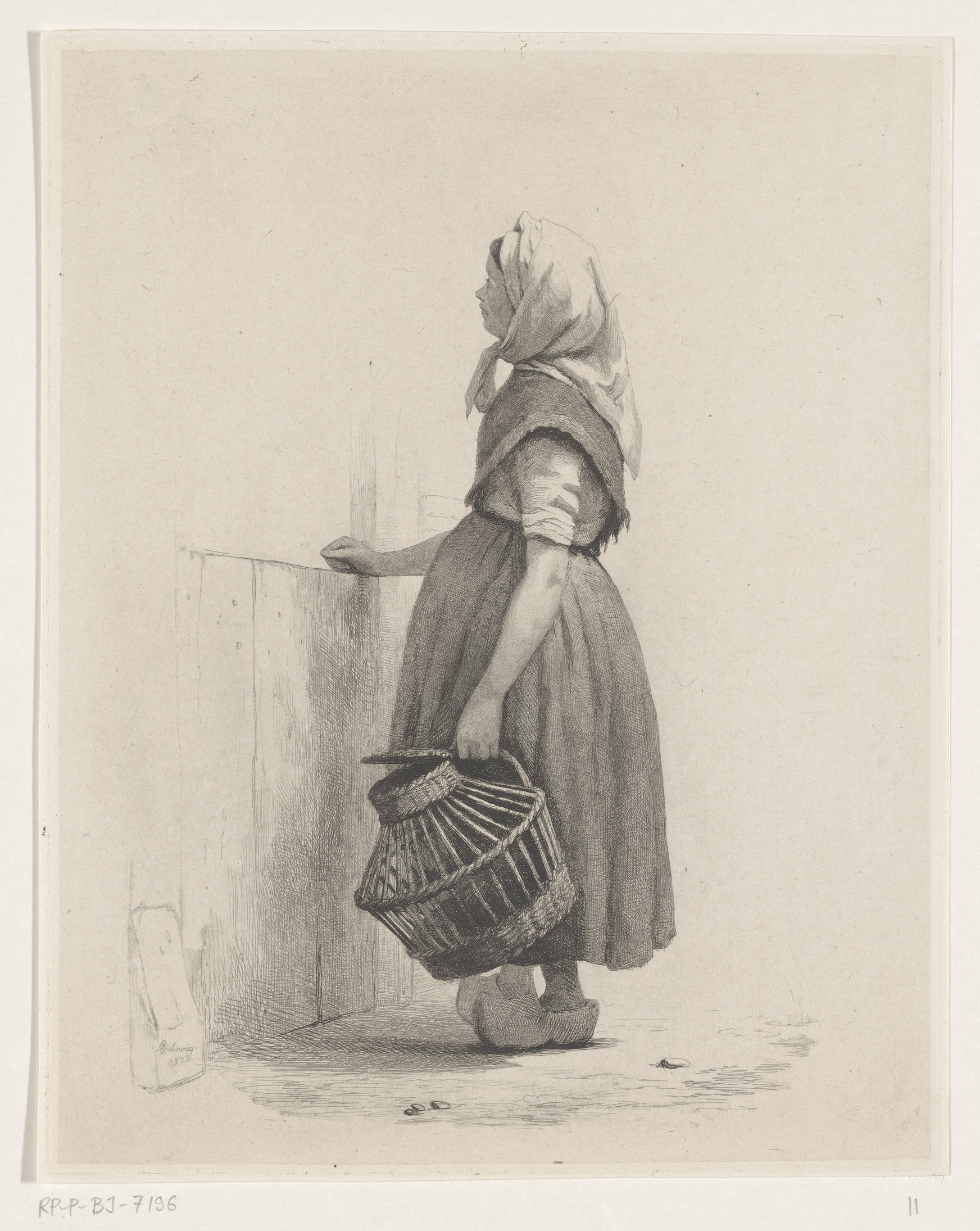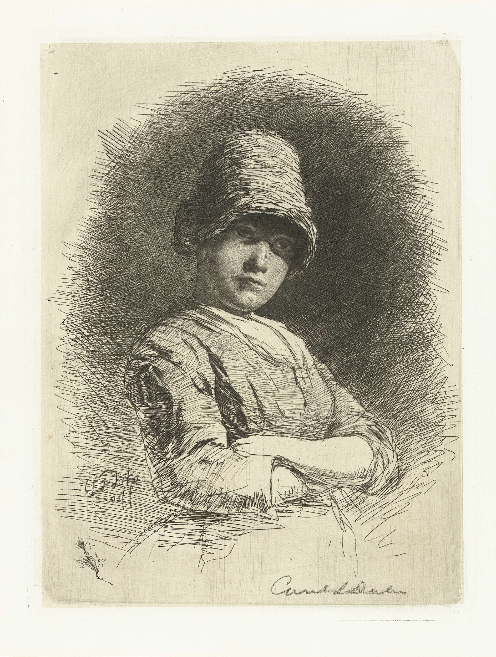 Portret van jonge vrouw, Anneke, staand met armen ov...
