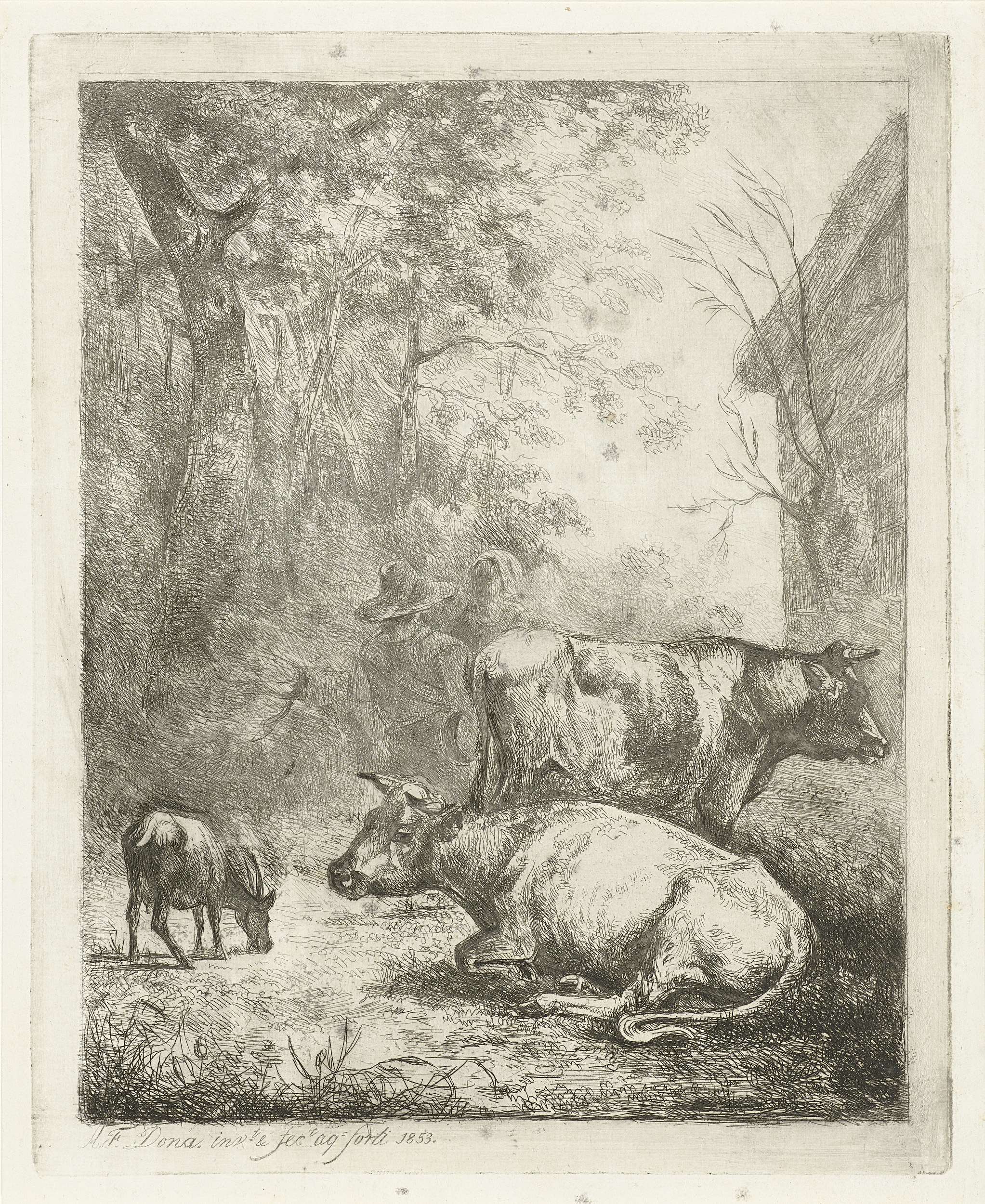 Boerenerf met twee koeien, een bokje en een pratend ...