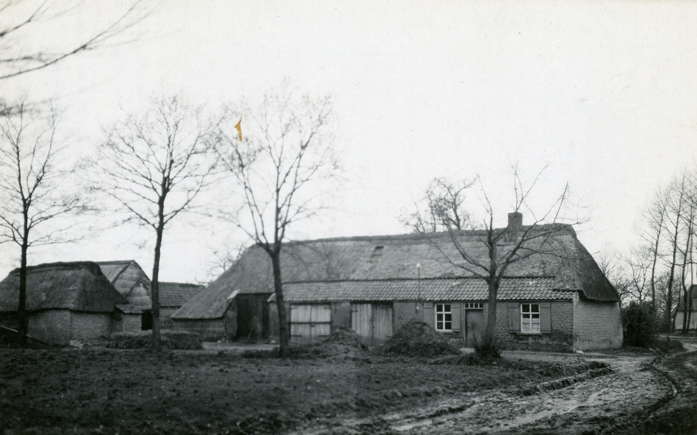 Boerderij in afbraak, Vessem, 1937 (zwart-wit negatief)
