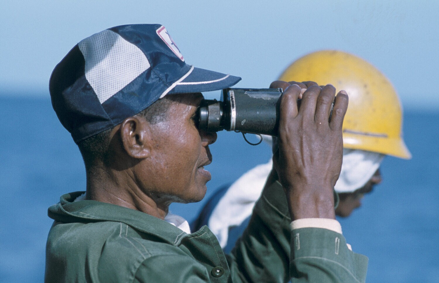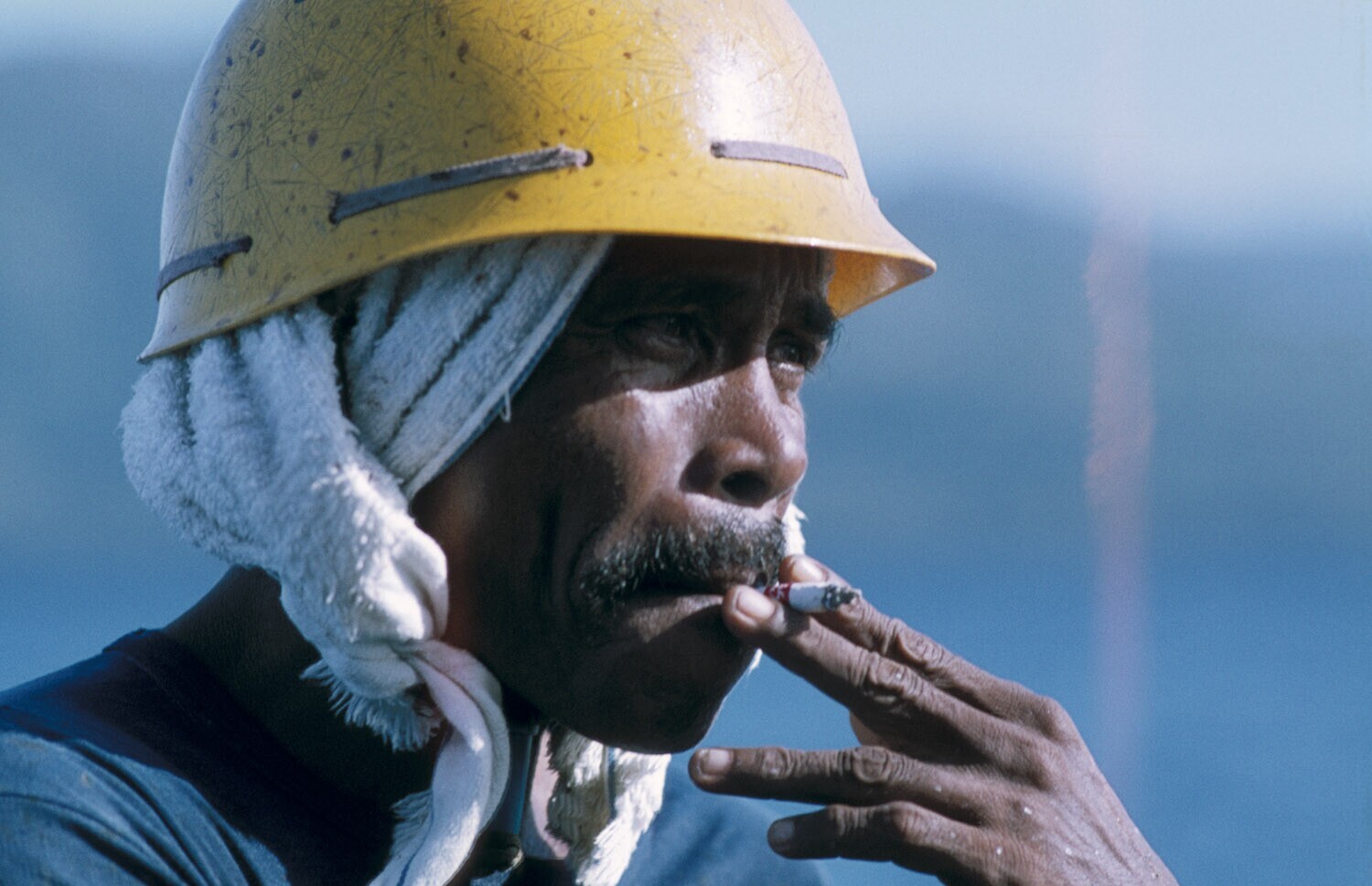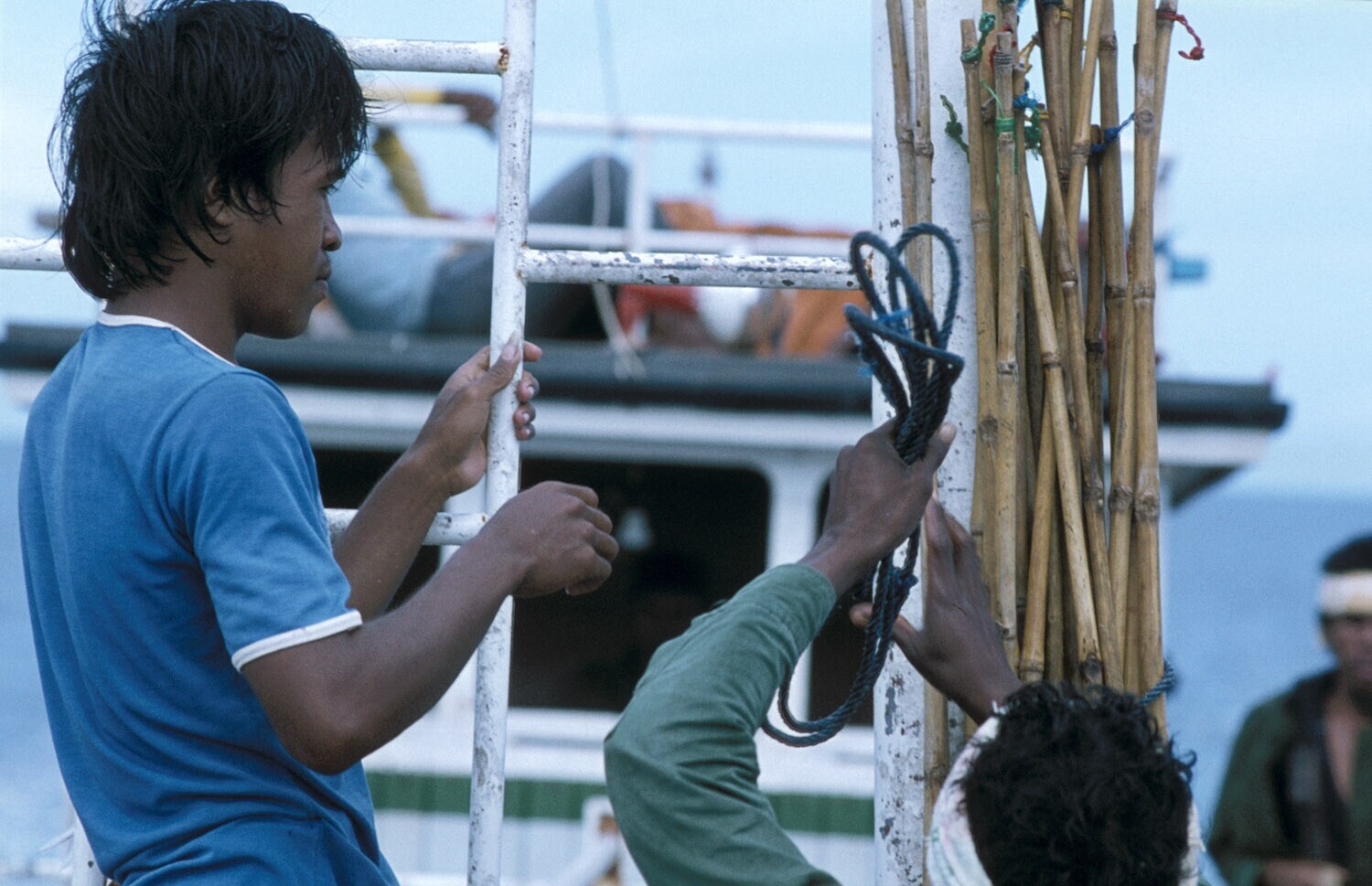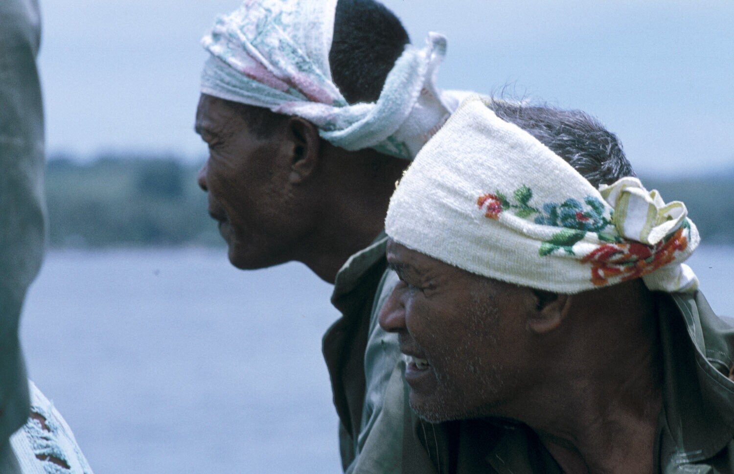 Close-up van een visser, Tulehu op Ambon, Molukken.