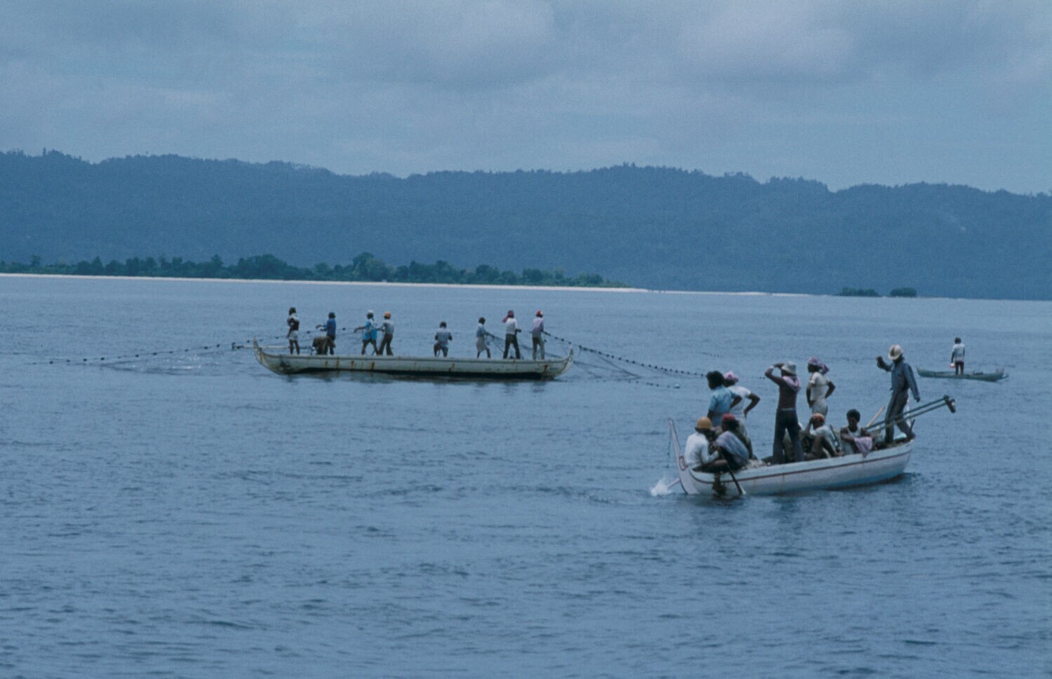 Het optrekken van het net, de Ikan poeri (=aasvisjes...