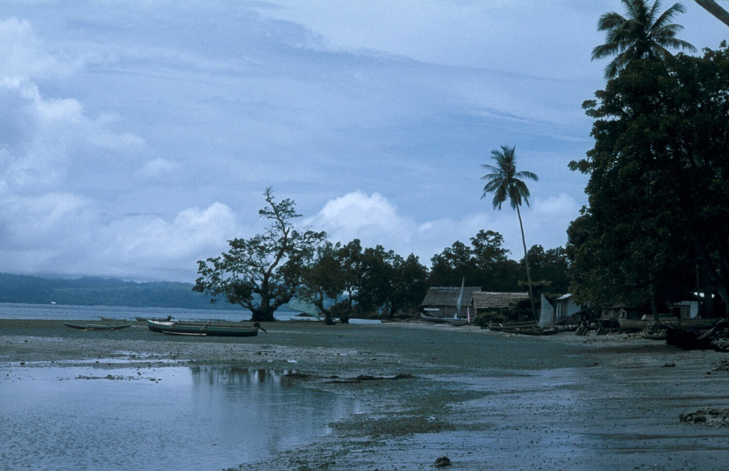 Het drooggevallen strand van Tulehu op Ambon, Molukken.