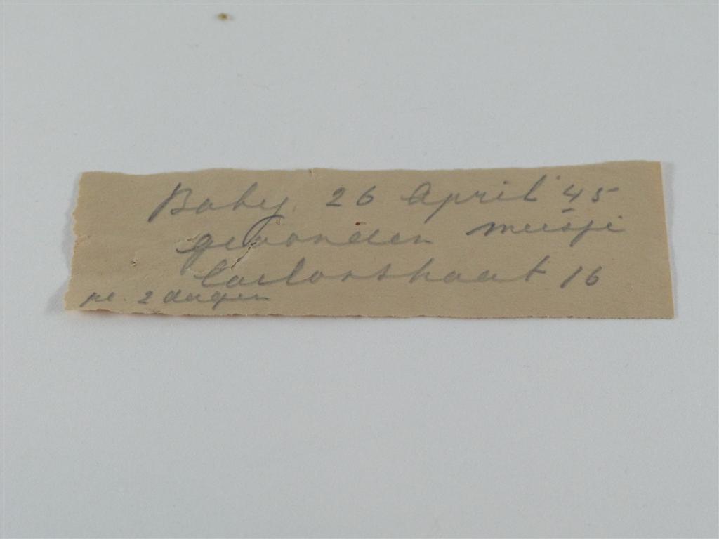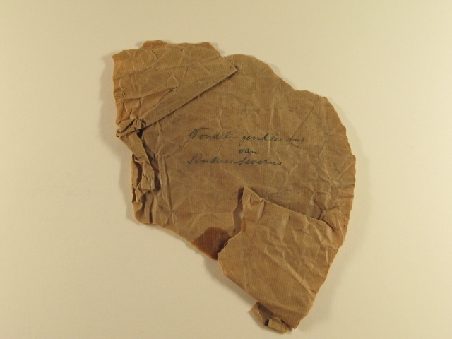 Blaadje met tekst (deel van vondelingenkleding)