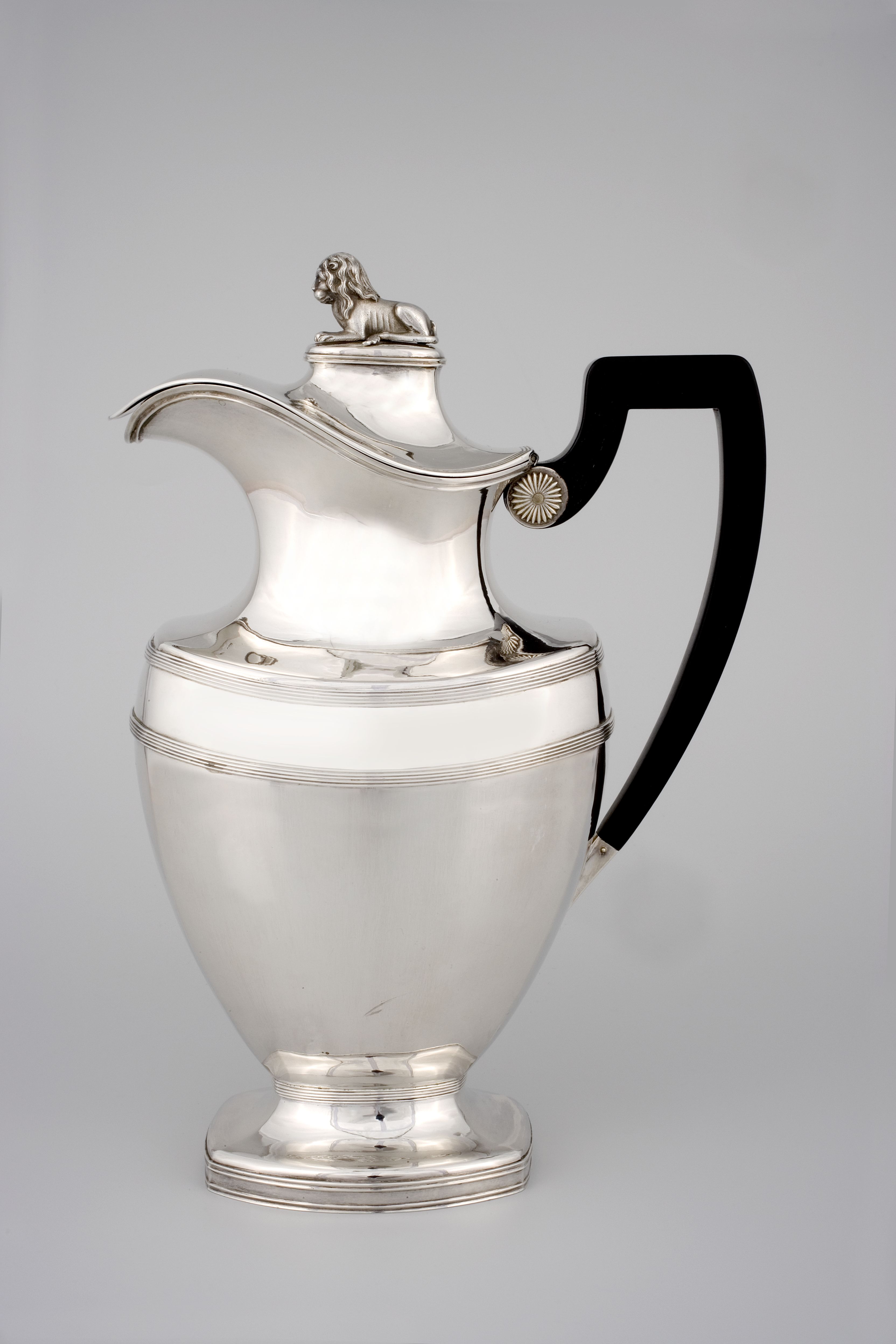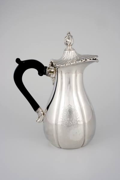 Chocoladekan met ebbenhouten oor, het deksel scharni...