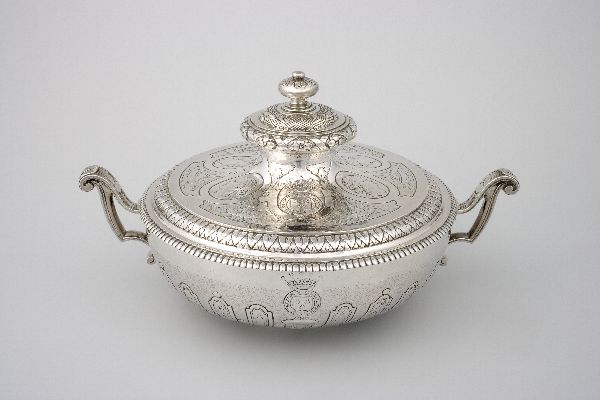 Terrine met deksel, met het wapen van Arnold Joost v...