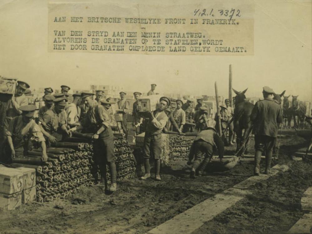 WO I; militairen egaliseren land voordat granaten ge...
