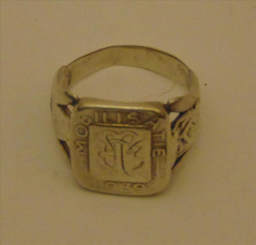 ring gemaakt van zilver met daarop de tekst: Mobilis...