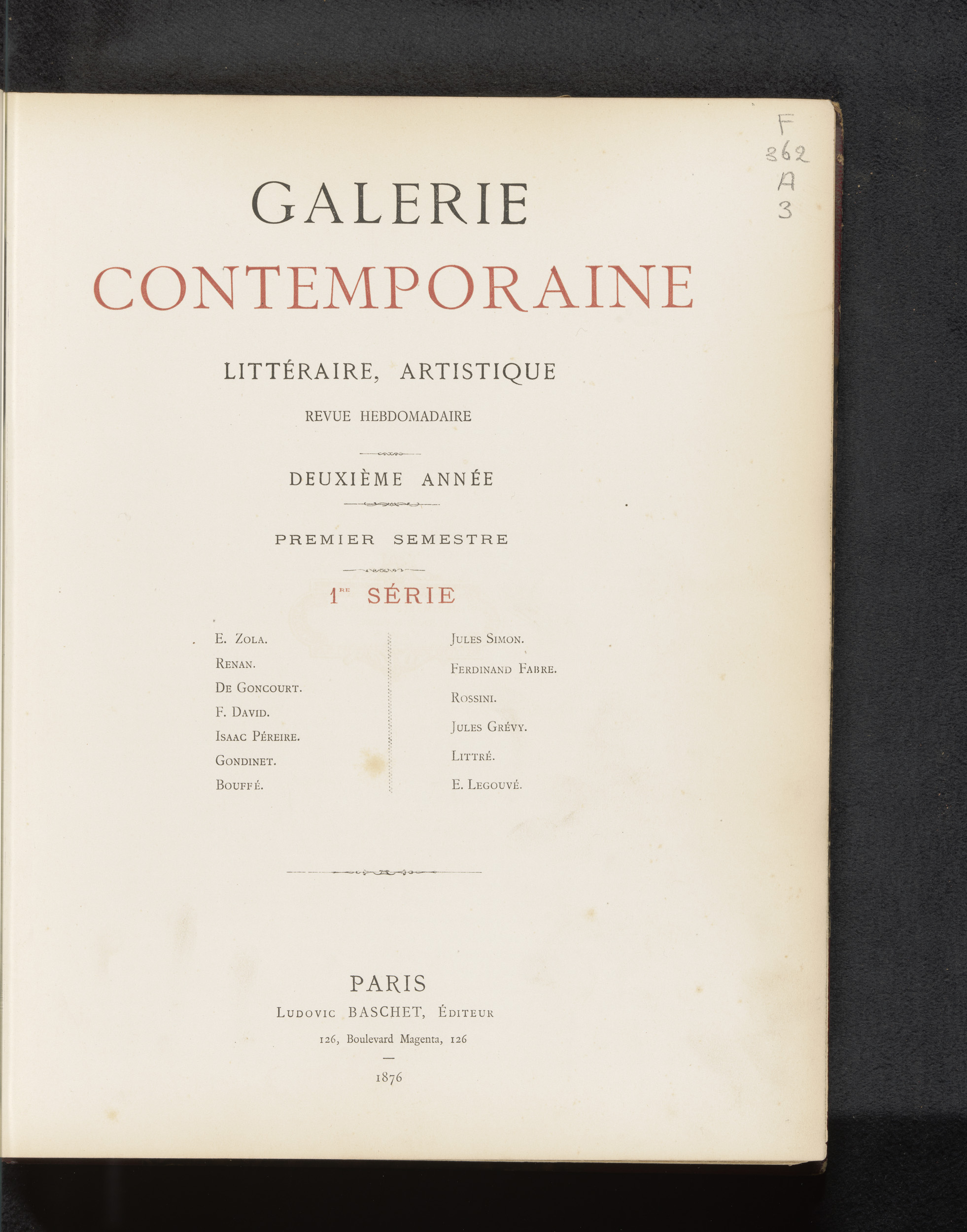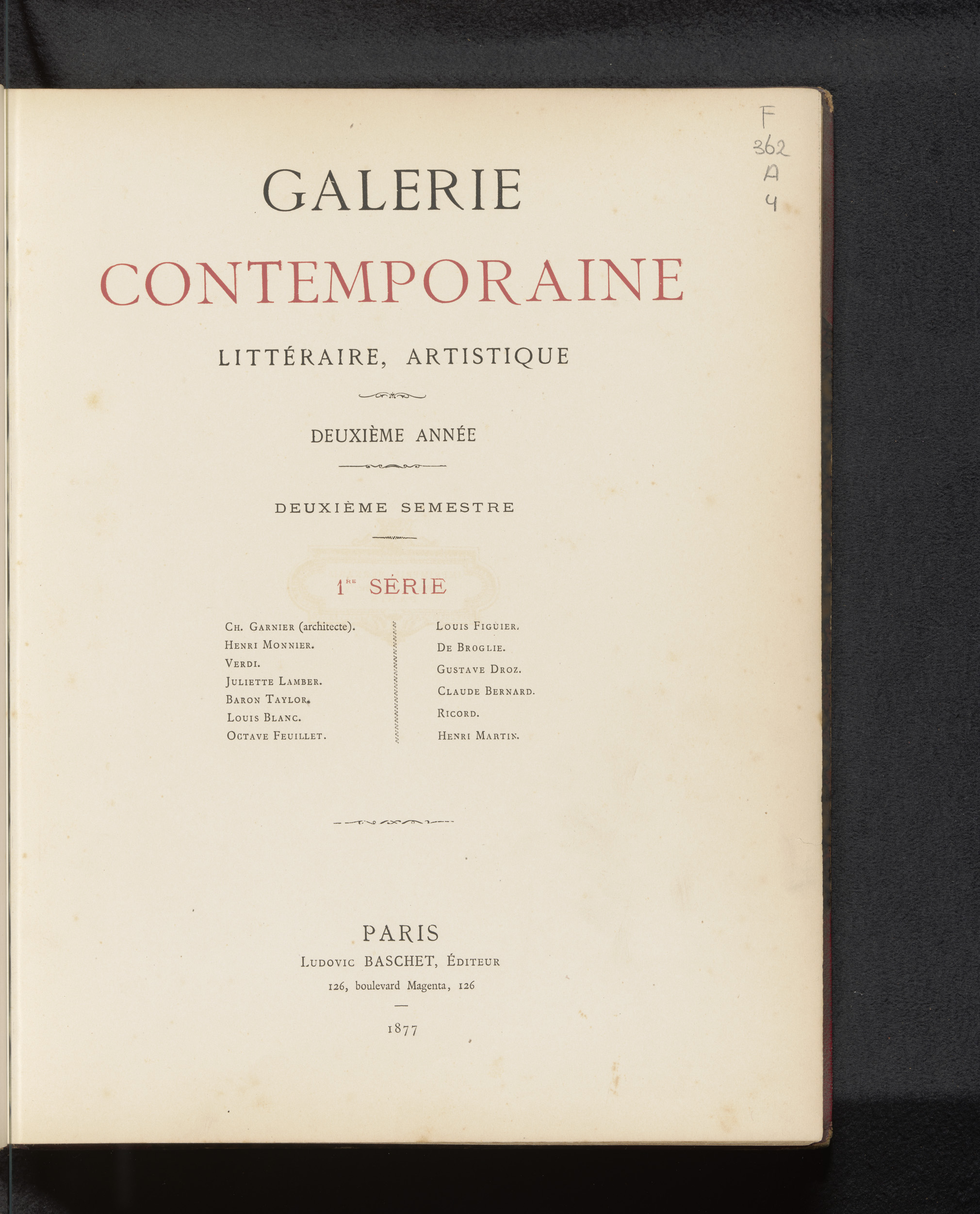 Galerie contemporaine : litteraire, artistique