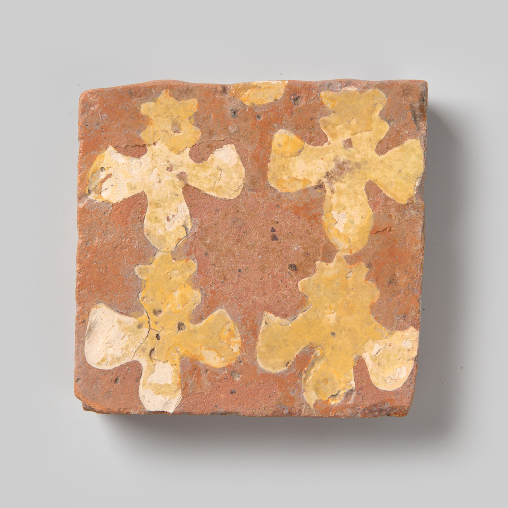 Vloertegel van keramiek, slibdecor, ca. 1400-1800