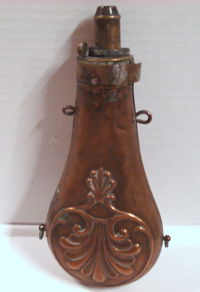 kruithoorn van koper uit 19e eeuw. Plat, verbreed na...