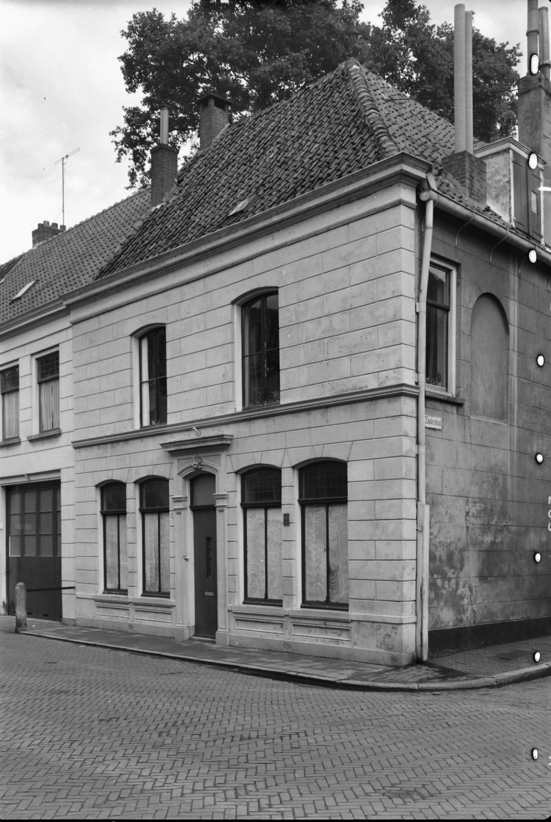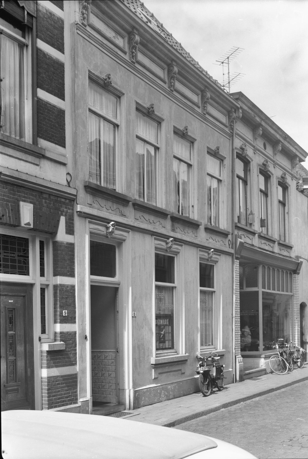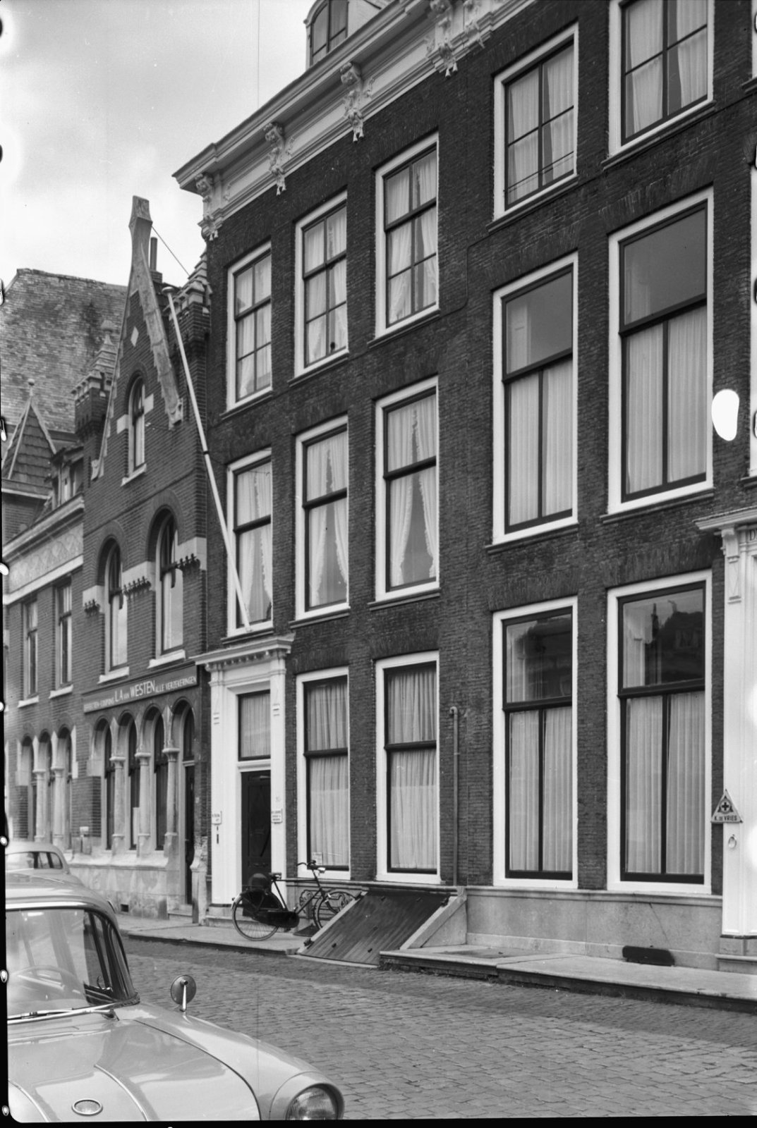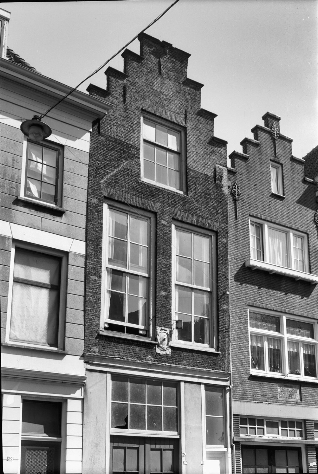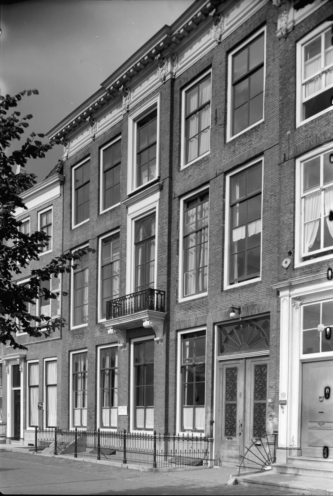 Voorgevel van drielaags pand met kroonlijst, pilaste...