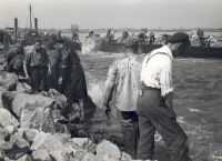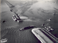 Dijkherstel rampgebied Zeeland. Rechts een caisson w...