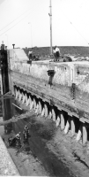 Droogzetten van de kleine sluis te Kornwerderzand, z...