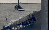 Dijkherstel rampgebied Zeeland. Een sleepboot trekt ...