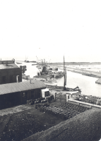 Werkzaamheden in de haven van Harderwijk. Een heimac...