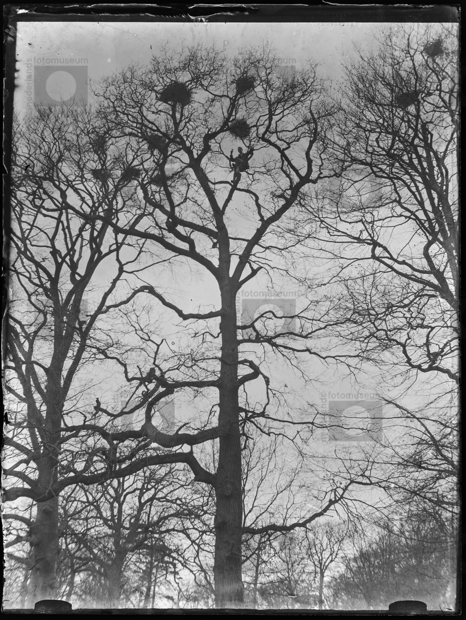Gerard Traanberg hoogin een boom in de broedkolonie ...