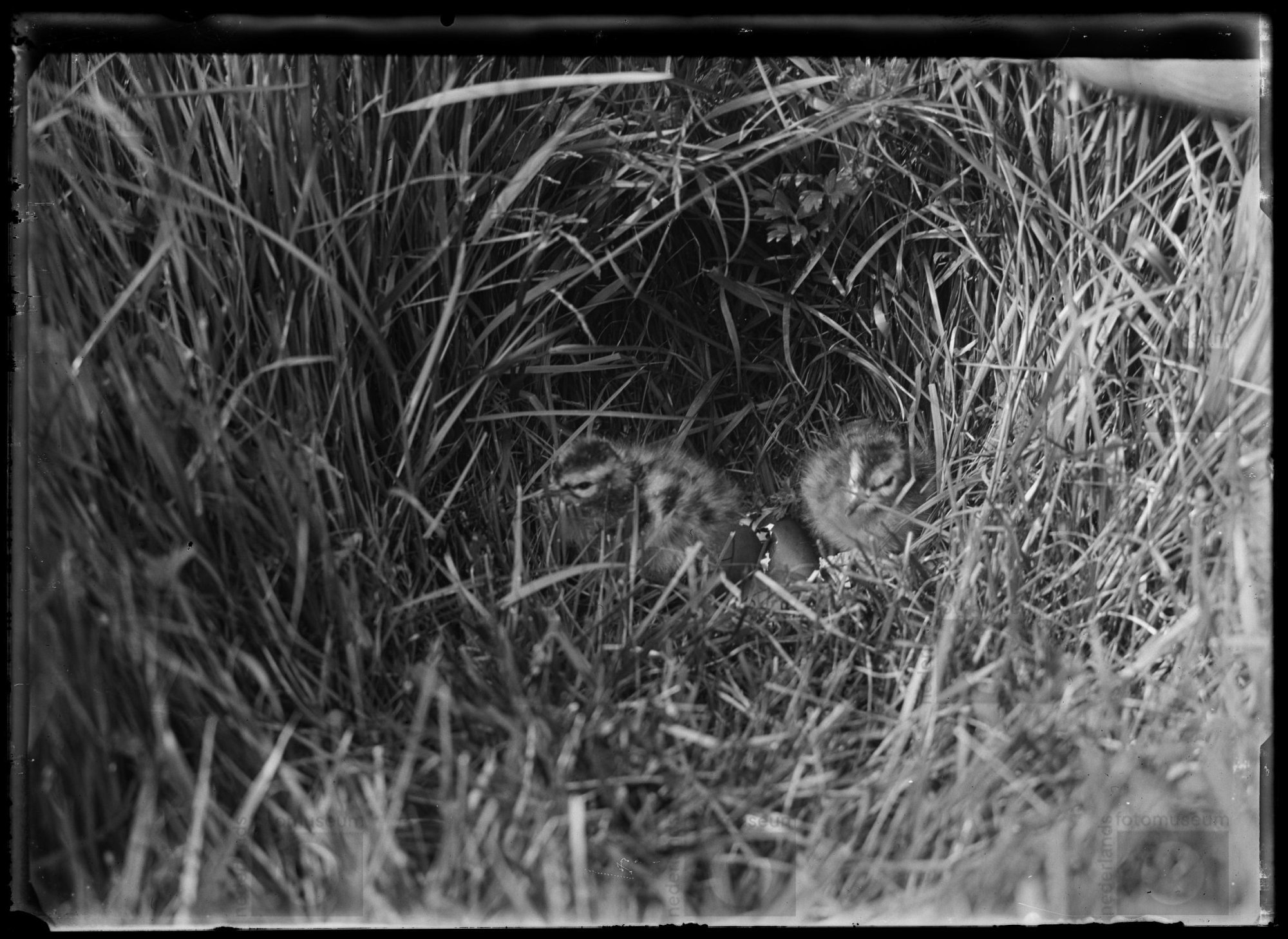 Nest met eieren en jongen van Grutto, Kampereiland (...
