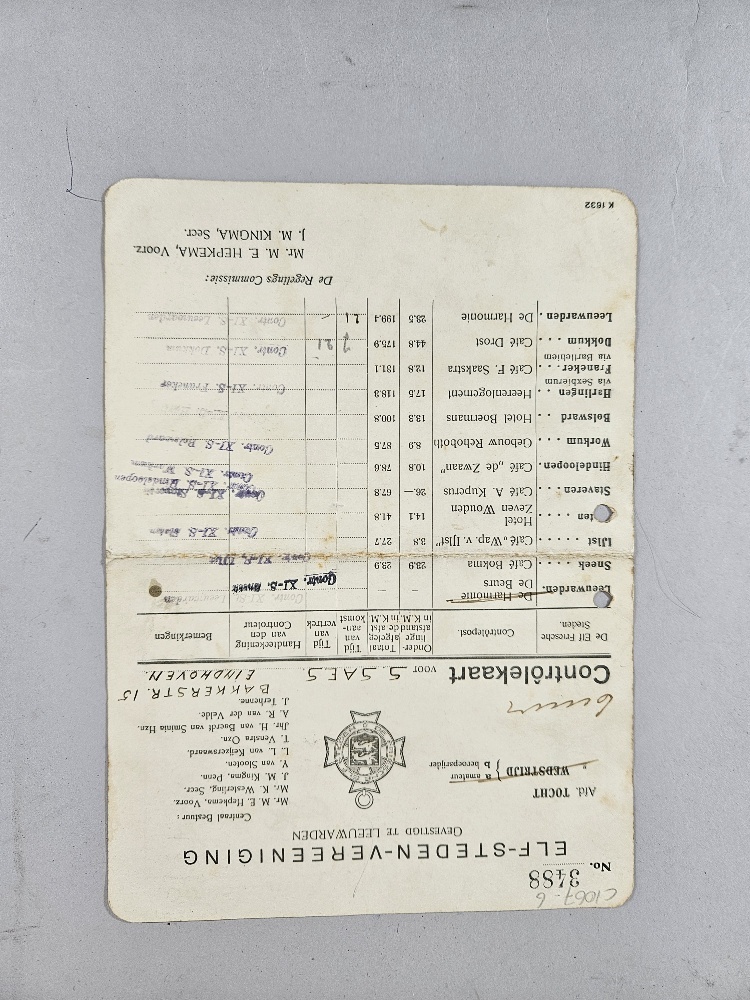Controlekaart (no. 3488) voor S. Saes, Bakkerstraat ...