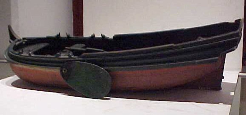 model sloep met zwaarden en riemen gemaakt van eiken...