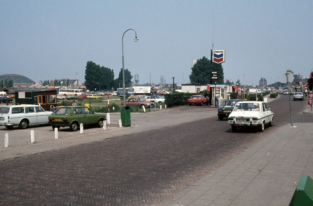 Strandboulevard met Chevron-benzinestation