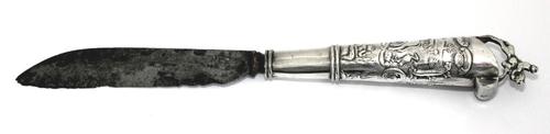 Mes. Stalen mes met zilveren pistoolvormig heft