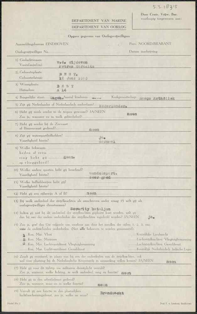 Aanmeldingsformulier oorlogsvrijwilliger Aanmeldings...