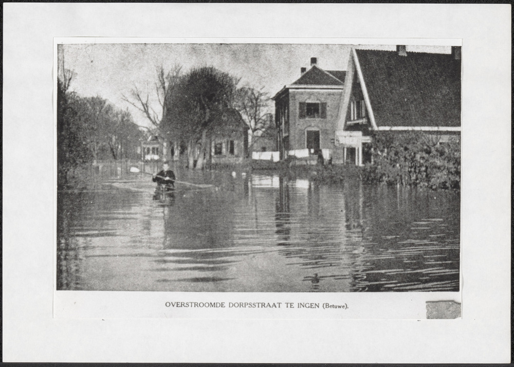 Afbeelding van de overstroomde Dorpsstraat te Ingen