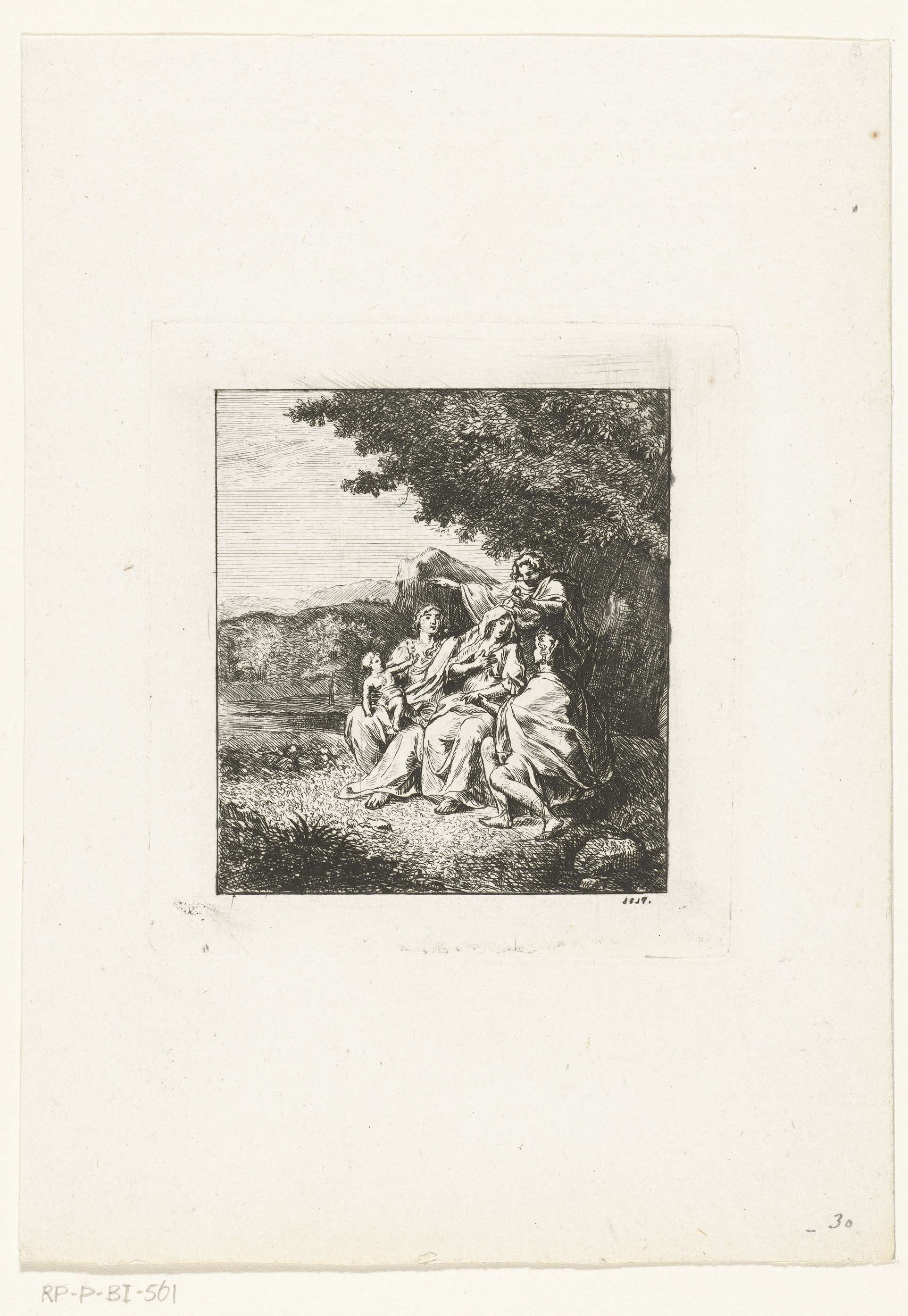 Landschap met twee vrouwen met kind en twee mannen