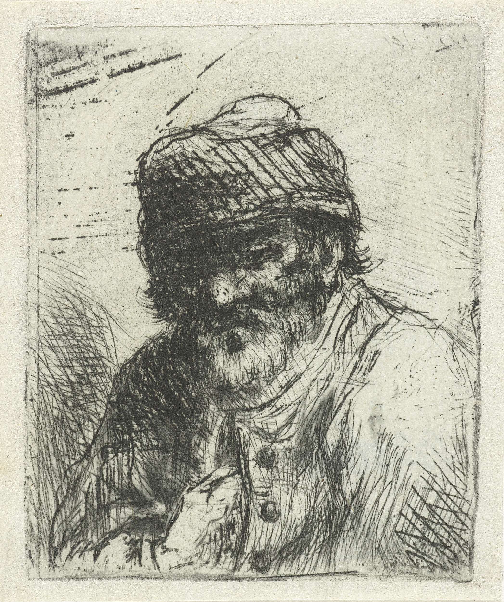 Bebaarde oude man met muts