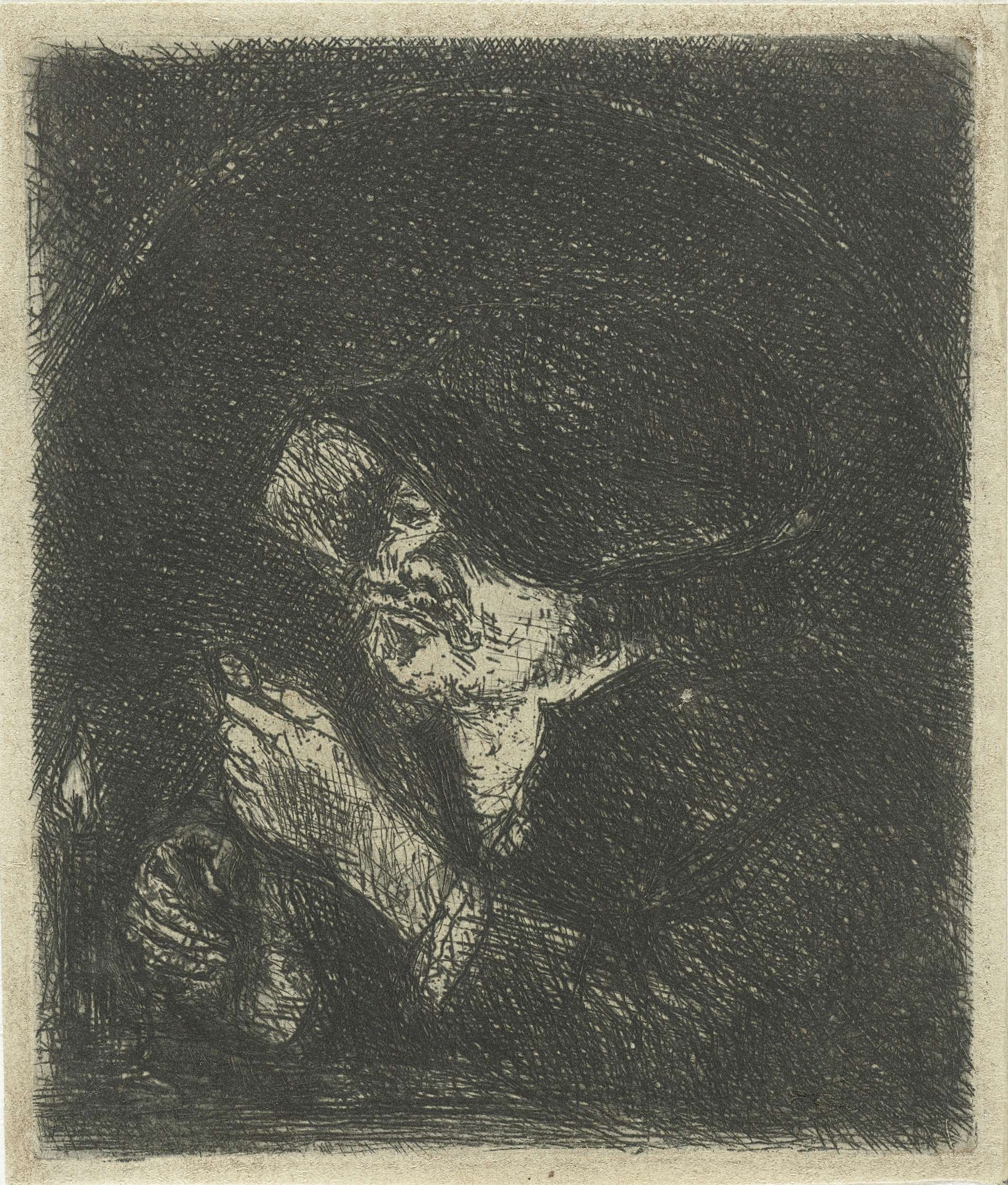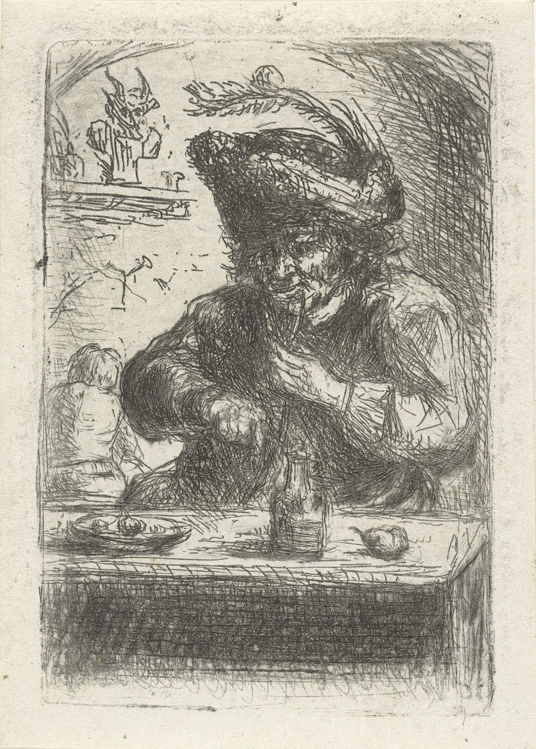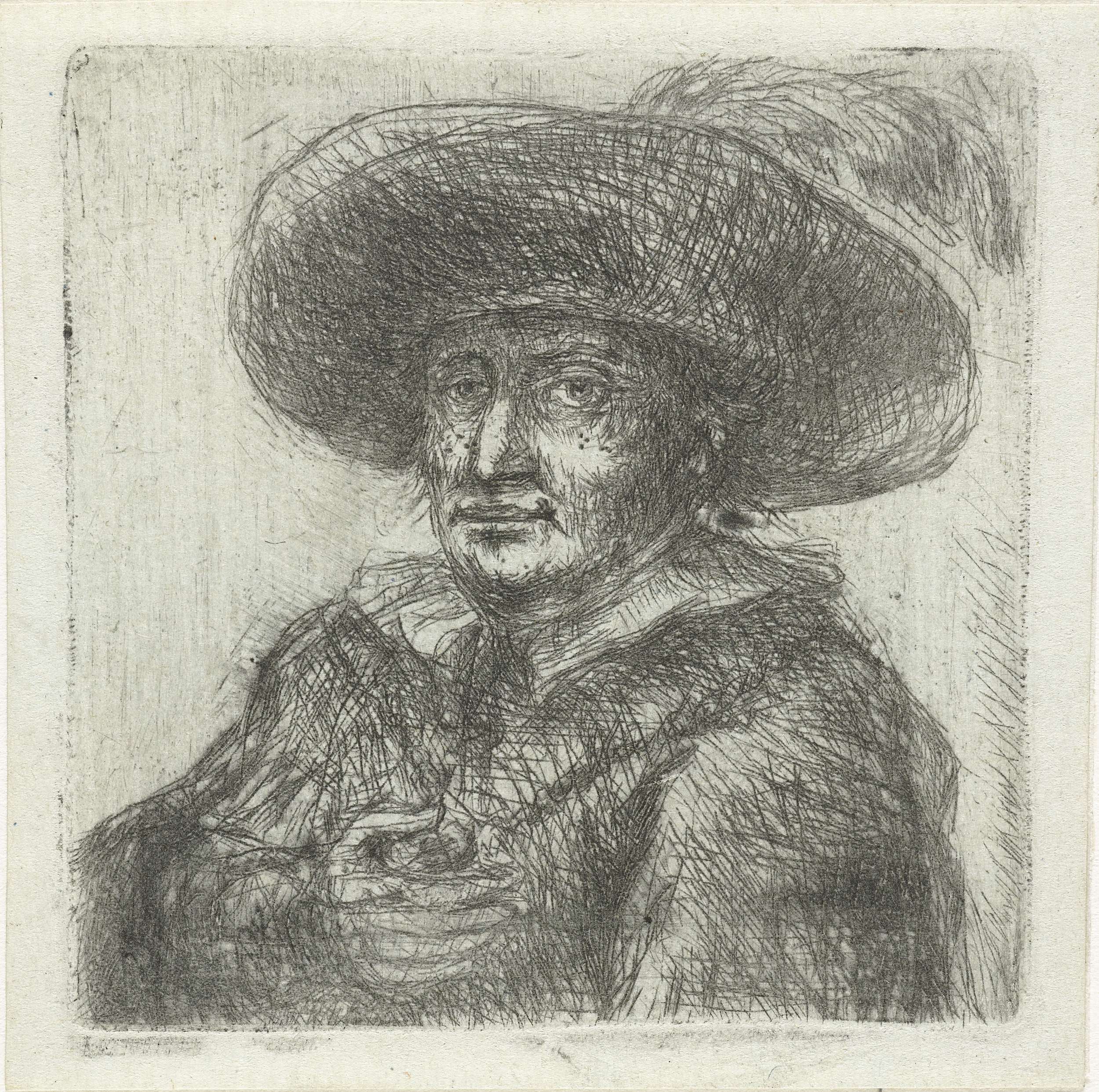 Man met ronde hoed met veer